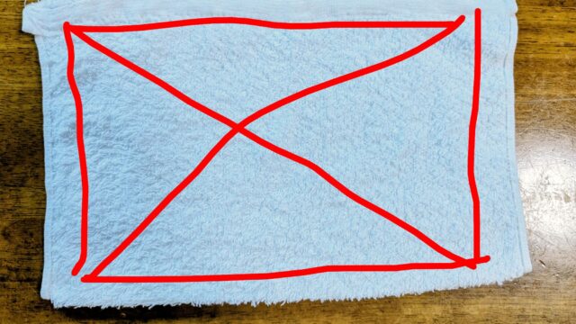 そのため、タオルの切ったところを隠すように端を折りたたんでください
