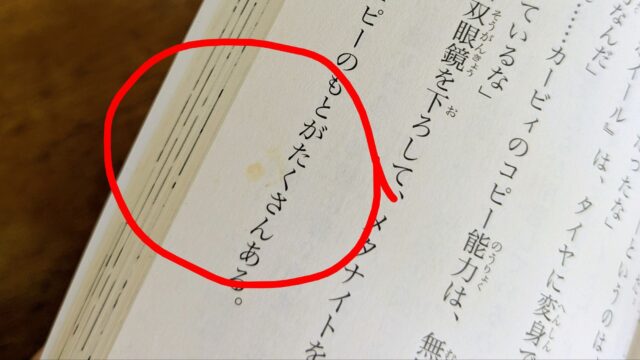 ってことで、メルカリで「新品未使用品」となっているカービィの小説を買ってみたのですが、なんと、本にシミが付いていたんですよ!