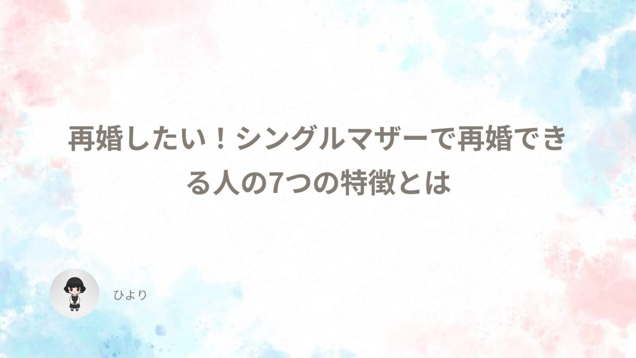 今回は再婚ができるシンママの特徴と再婚活動をするときに気を付けることを紹介します。